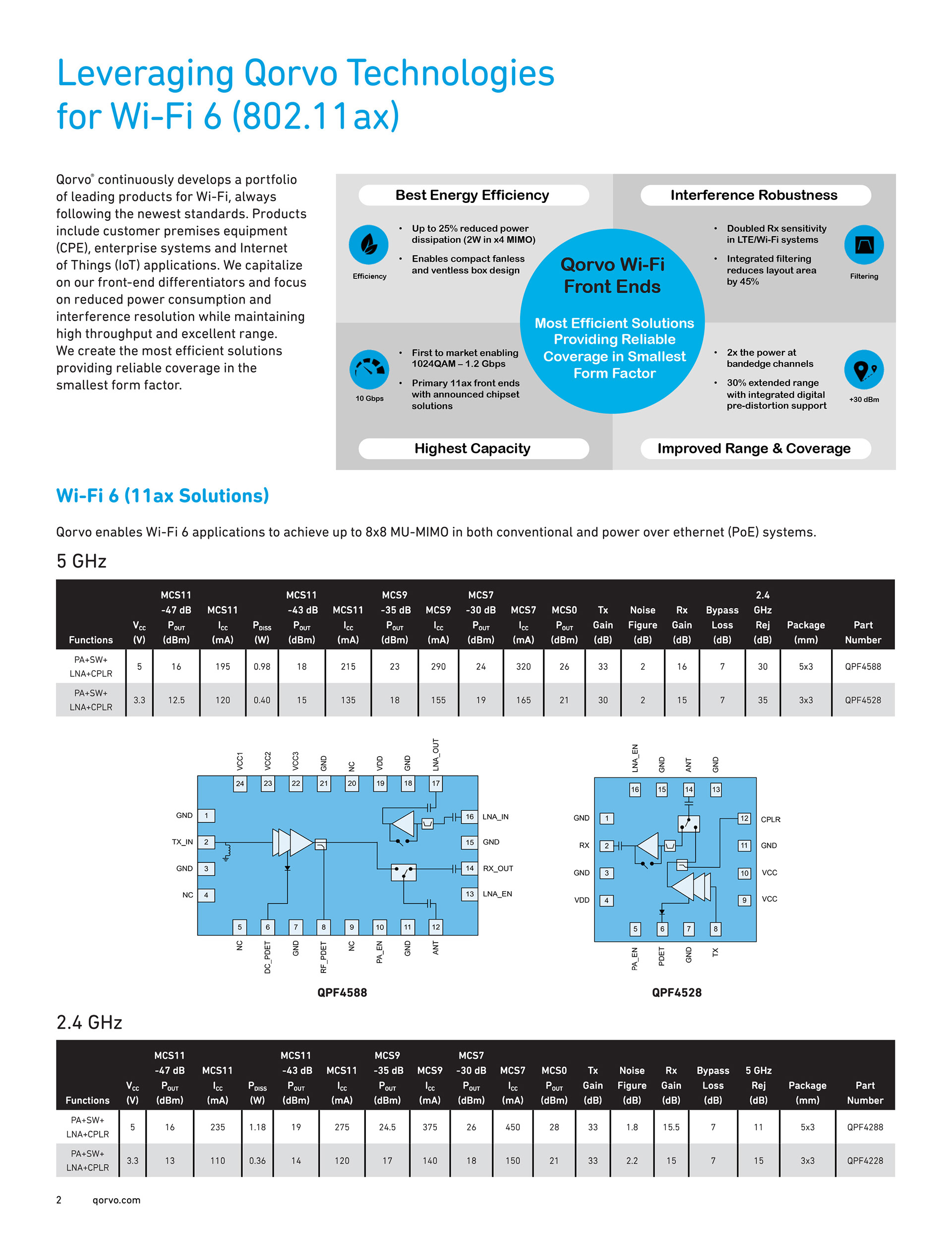 Qorvo Customer Premise Brochure: page 1, 2, and 8.